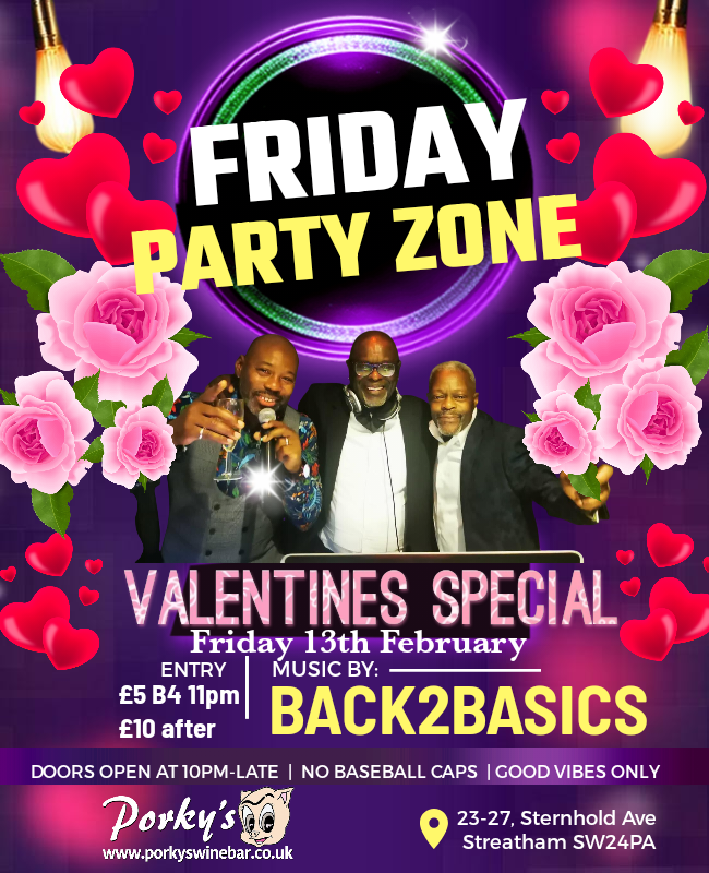 The Friday Night Party Zone comes alive every Friday night with top dj’s on rotation, Smart casual dress no baseball caps, Â fresh box trainers welcome